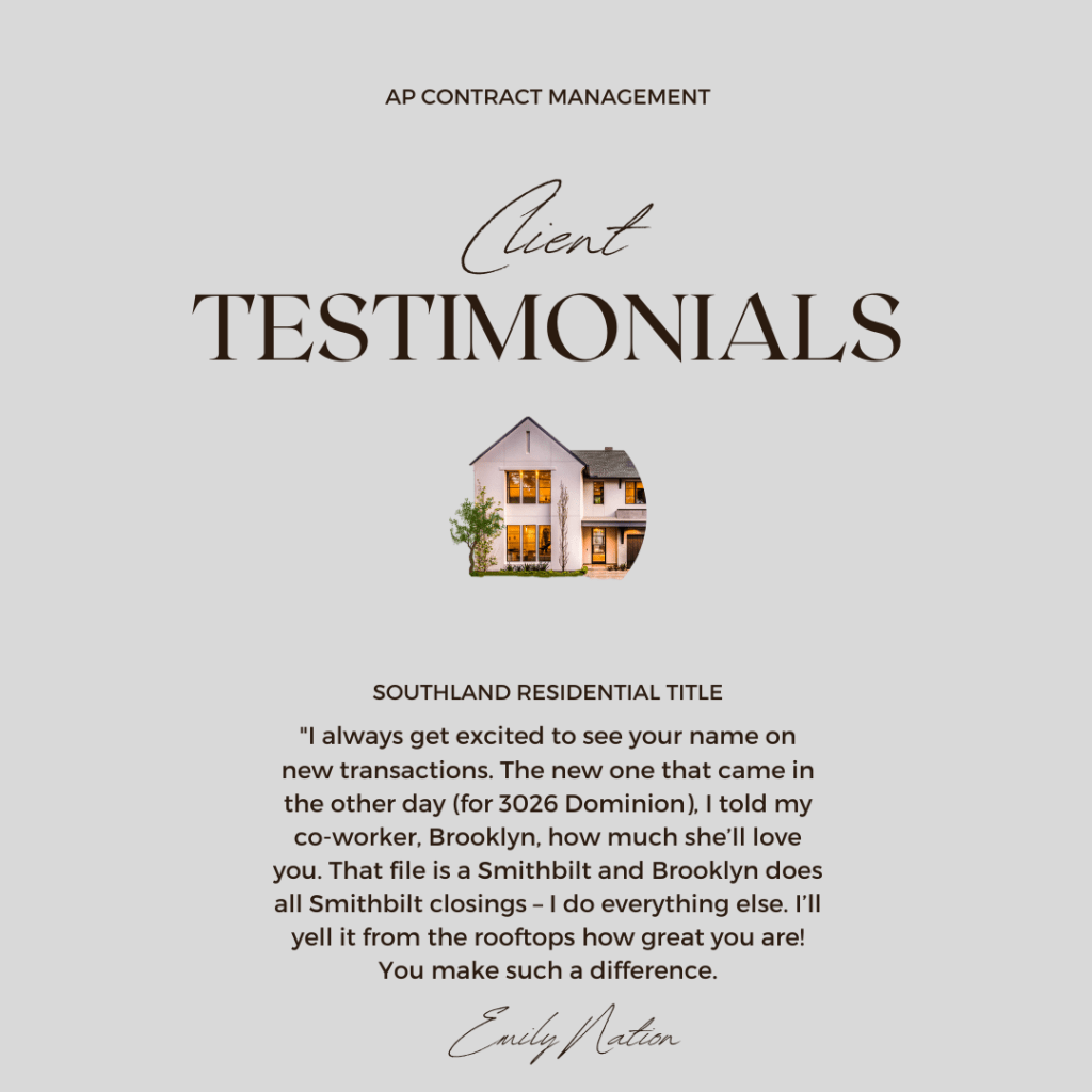 I have supported transactions across Tennessee, as well as in Oklahoma, Maryland, and Pennsylvania, and beyond, and now offer services nationwide. Each partnership is thoughtfully tailored, allowing you to maintain your level of excellence and volume without the need for in-house support.